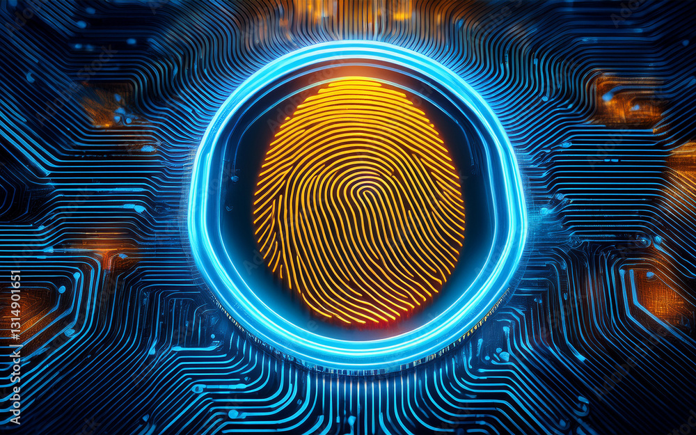 Huella digital futurista, de ciber seguridad en internet, y en el ciber espacio. #1314901651