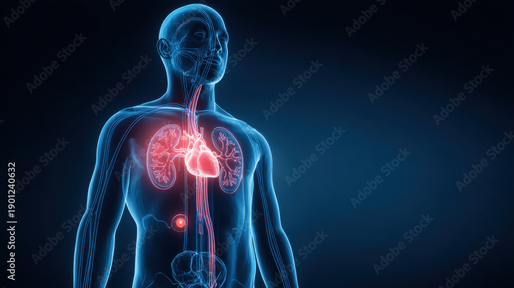 Human anatomy medical illustration cardiovascular system respiratory system internal organ heart lung digestive system circulatory system healthcare concept glowing human anatomy medical #1901240632