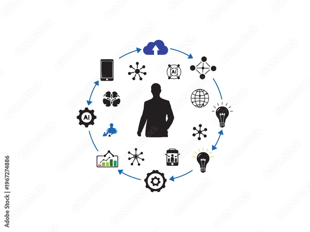 Human-centered AI technology and business process innovation on white background. on white background. #1967274886