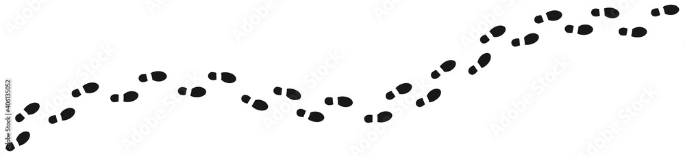 Human footprints tracking path on white background, Shoes trail track vector illustrations #406135052