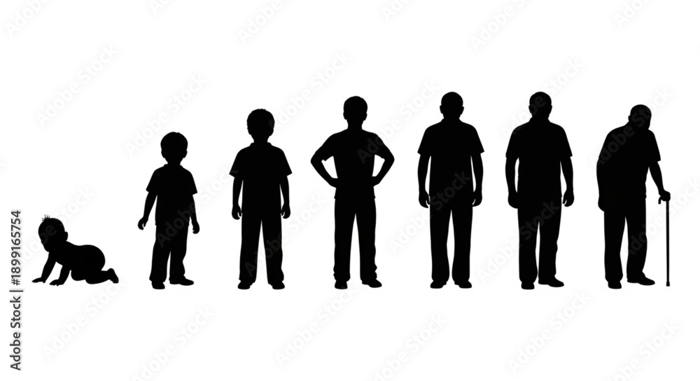 Human life cycle stages from infancy to old age silhouettes. #1899165754