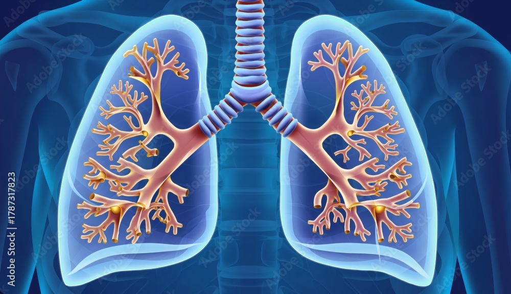 Human lungs anatomy diagram for medical education and respiratory system illustration #1787317823
