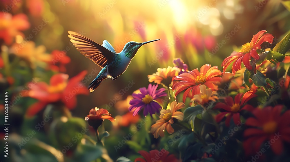 Hummingbird in a Sunlit Garden: A Moment of Serenity #1174443665