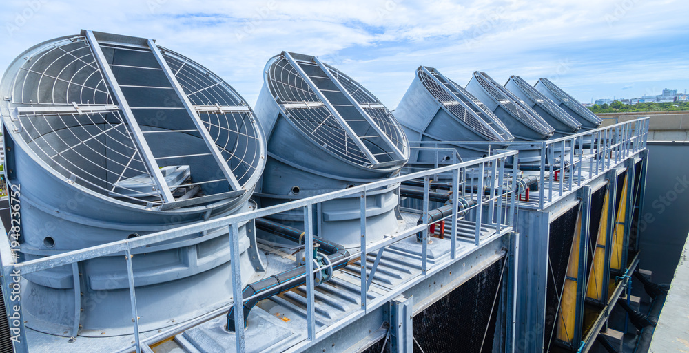 HVAC Air Chillers on Rooftop Units. Air Conditioner for Large Industry, Air Cooling Tower system #1948236752