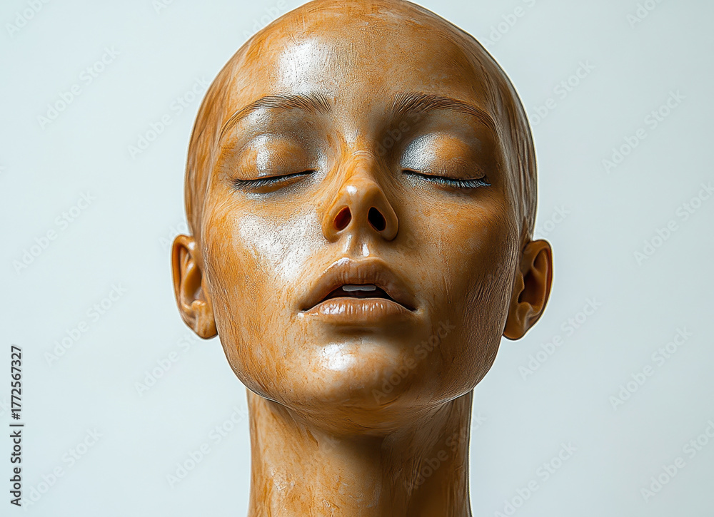 Hyperealistic Detailed Manikin Head with Closed Eyes Isolated on White Background #1772567327