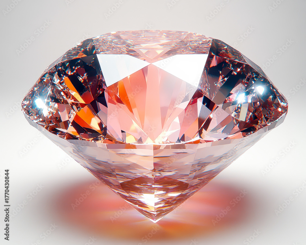 Hyperealistic High-Quality Image of a Brilliant Cut Diamond with Unique Color Variations Isolated on Pure White Background #1770430844