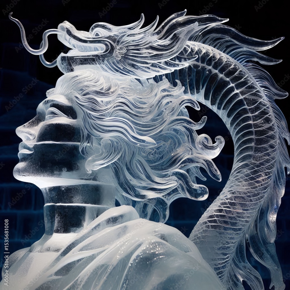 Ice Sculpture A statue carved from ice shimmering and translucen #1535681008