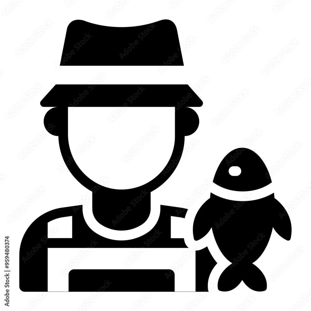 Icon of an aquaculture farmer, representing workers in the fish farming industry. #959480374
