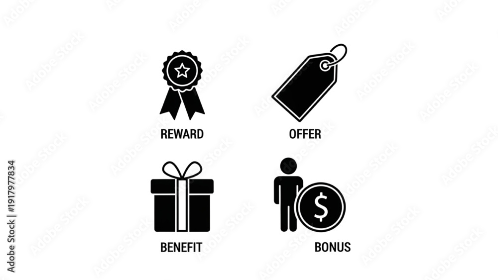 Icon Sheet Featuring Reward, Offer, Benefit and Bonus Vector Symbols #1917977834