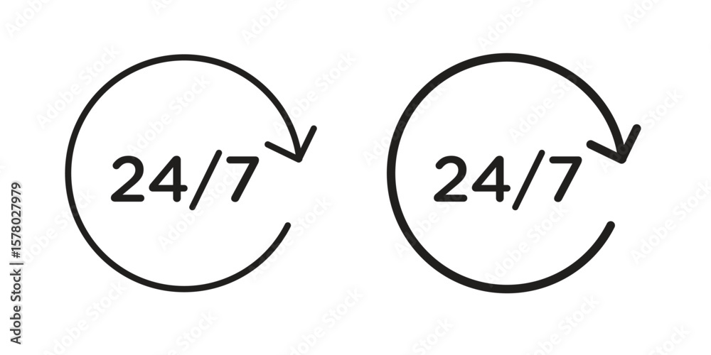 24 7 icon symbol set in black. line and flat icons #1578027979