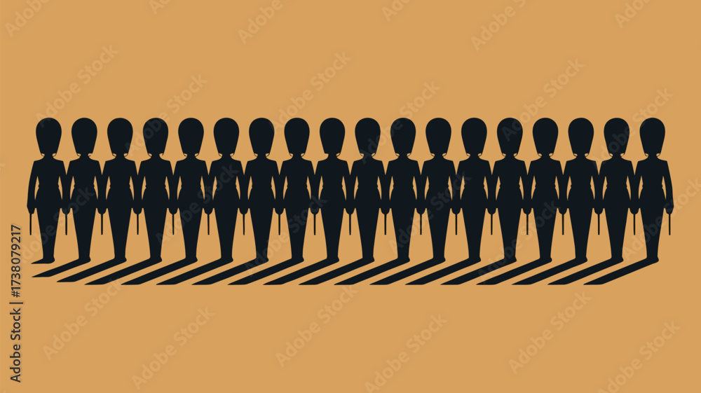 Iconic royal guard silhouettes in perfect formation evoking British heritage and tradition, ideal for travel, history or culture related designs #1738079217