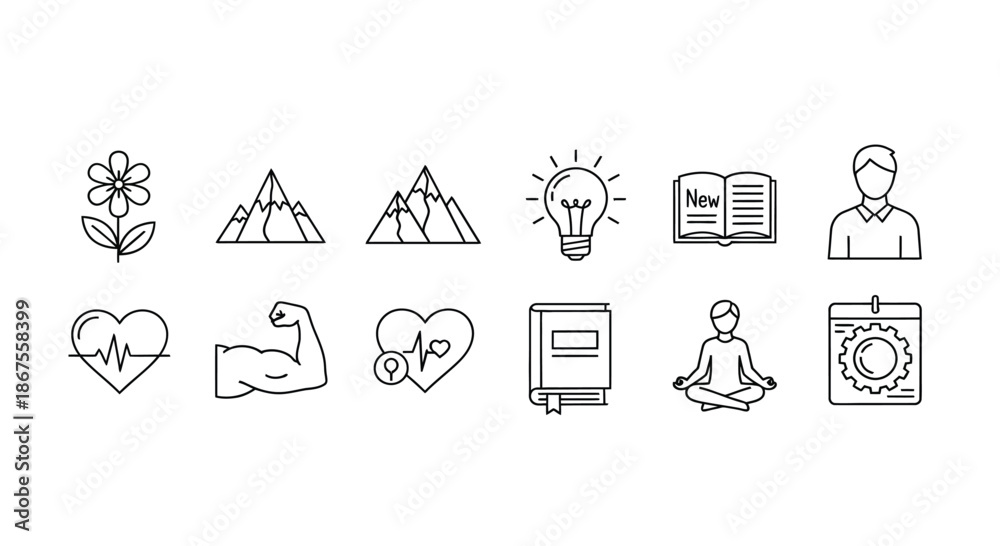 Icons representing health, wellness, and personal growth Vector #1867558399