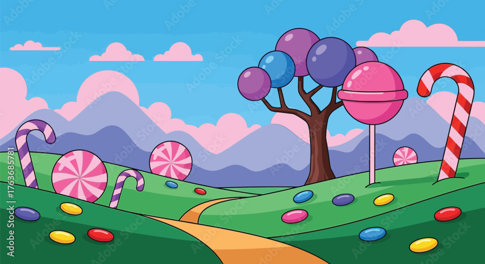 Illustration candy land landscape cartoon sweets background art vector #1763685781