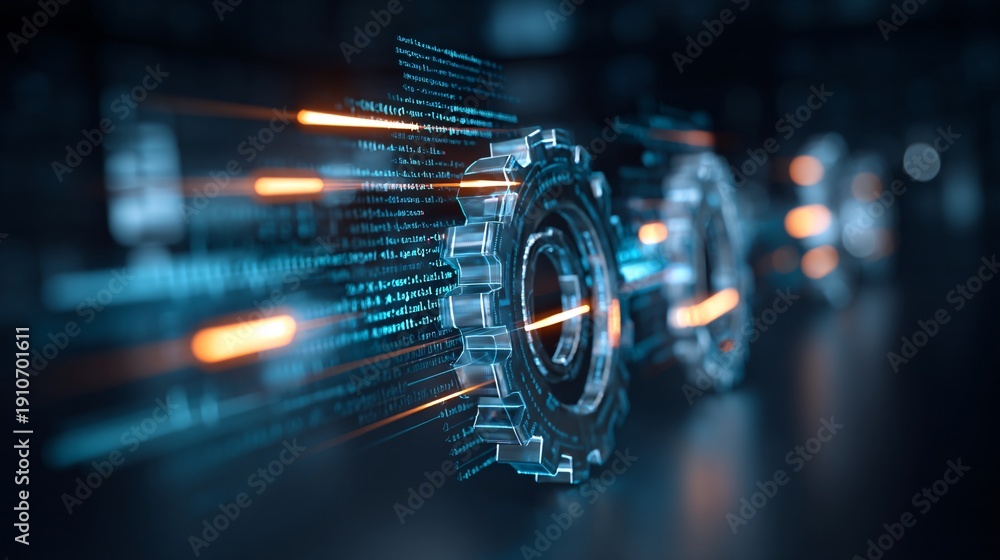 illustration depicting agentic AI systems through dynamic programming code and synchronized digital gears, symbolizing autonomous intelligence and scalable business automation agentic, ai, artificial, #1910701611