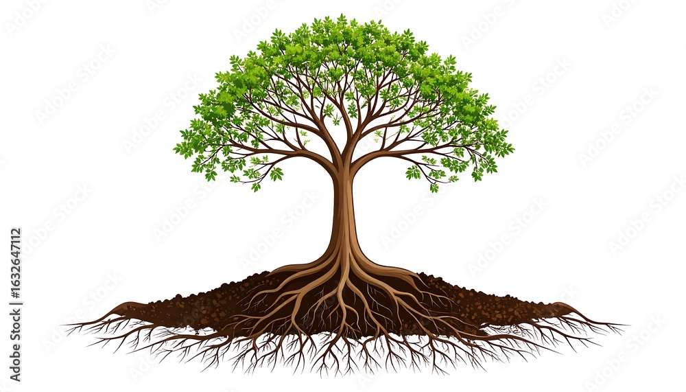Illustration of a tree with its roots #1632647112