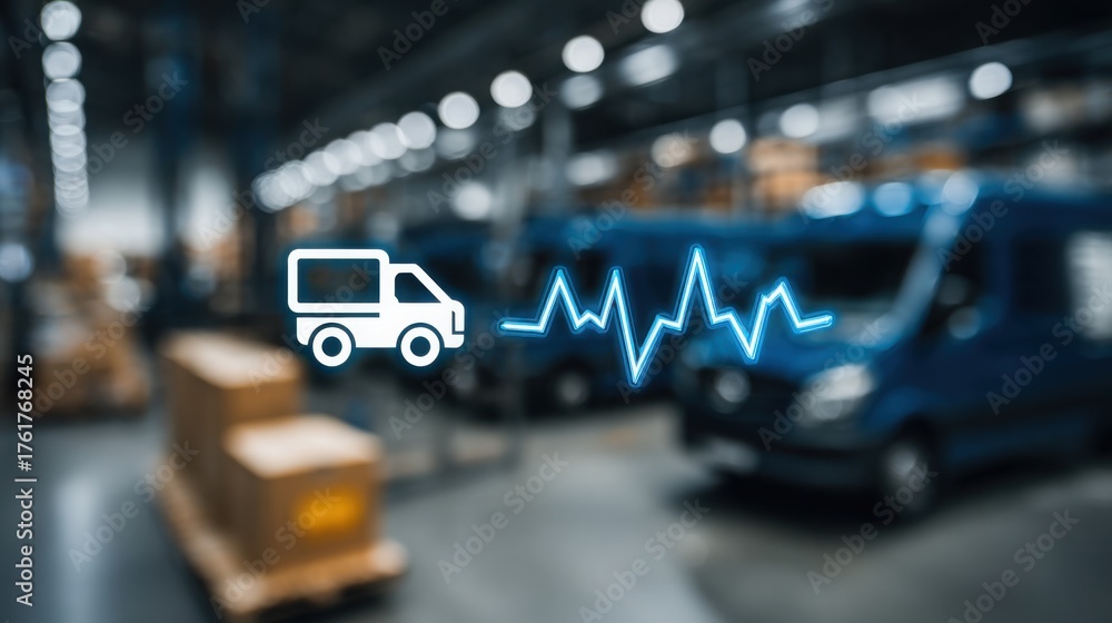 Illustration of a truck with a heartbeat representing the connection between transportation and adaptive supply models #1761768245