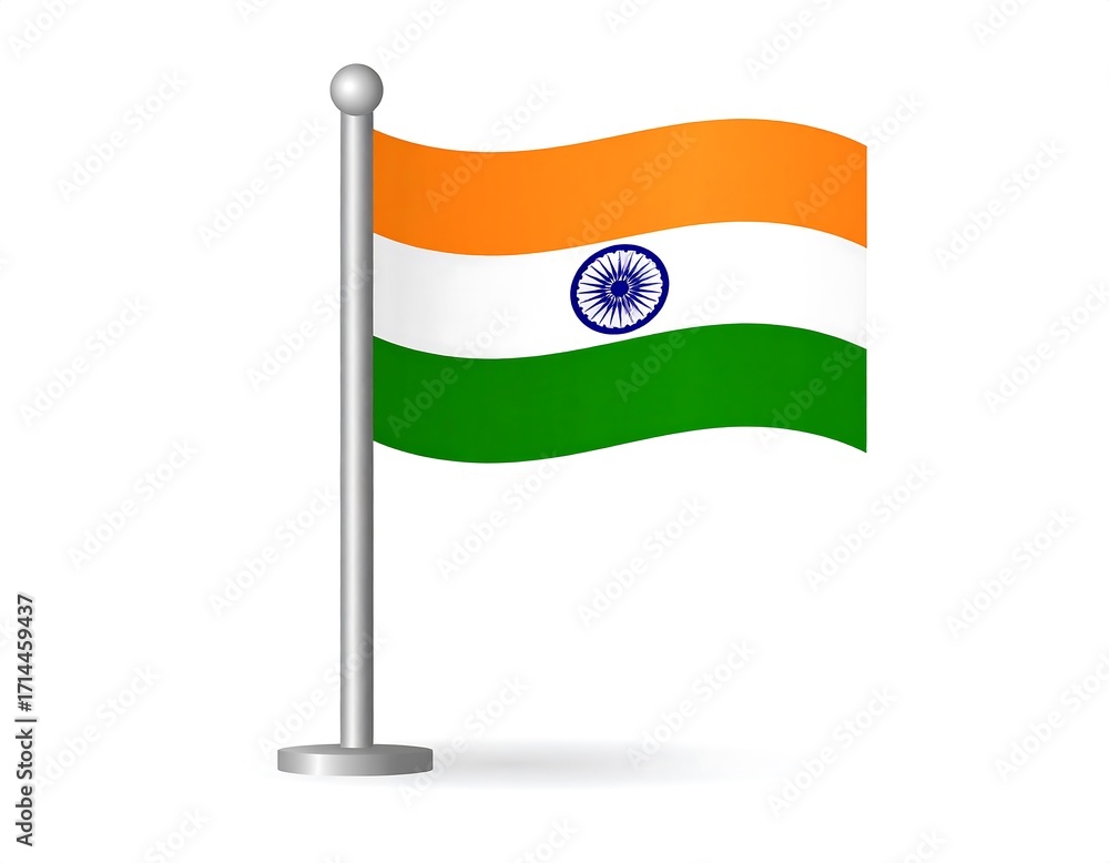 Illustration of an Indian flag on a metal flagpole #1714459437