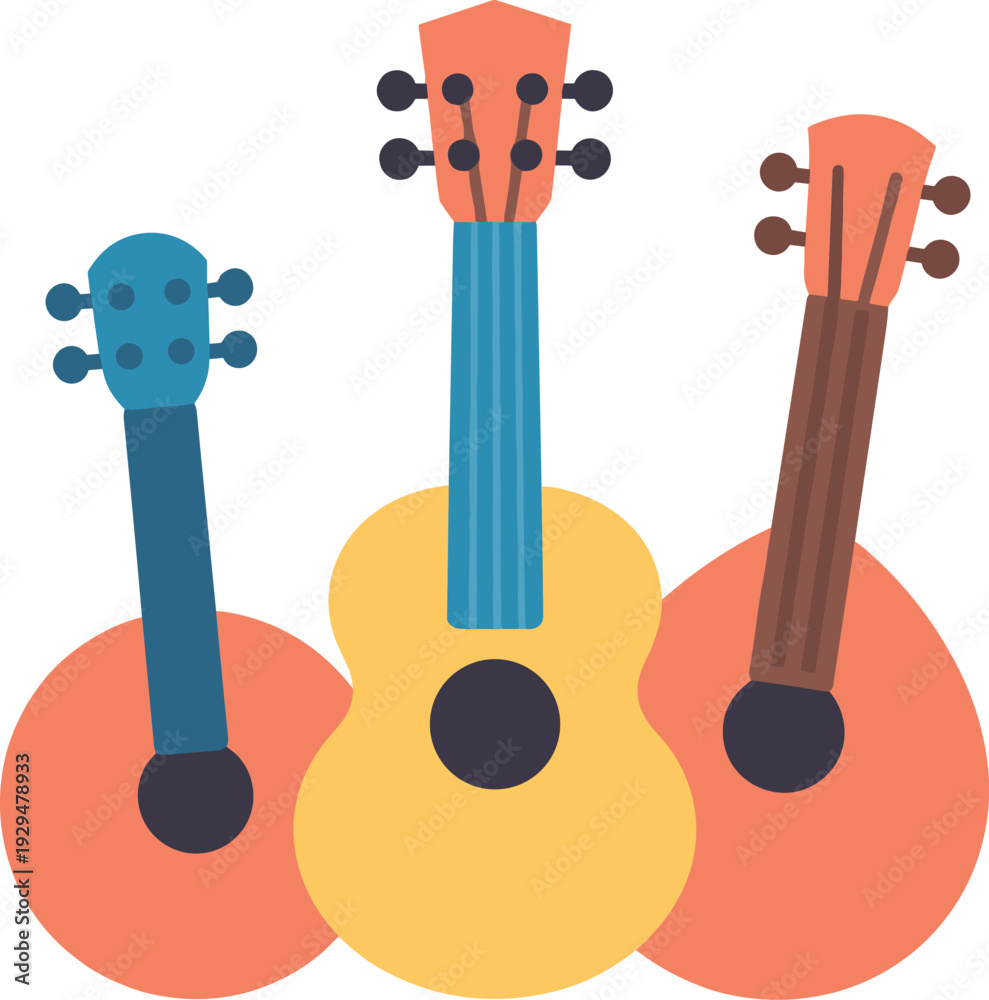 Illustration of colorful ukuleles arranged in a simple and playful manner #1929478933