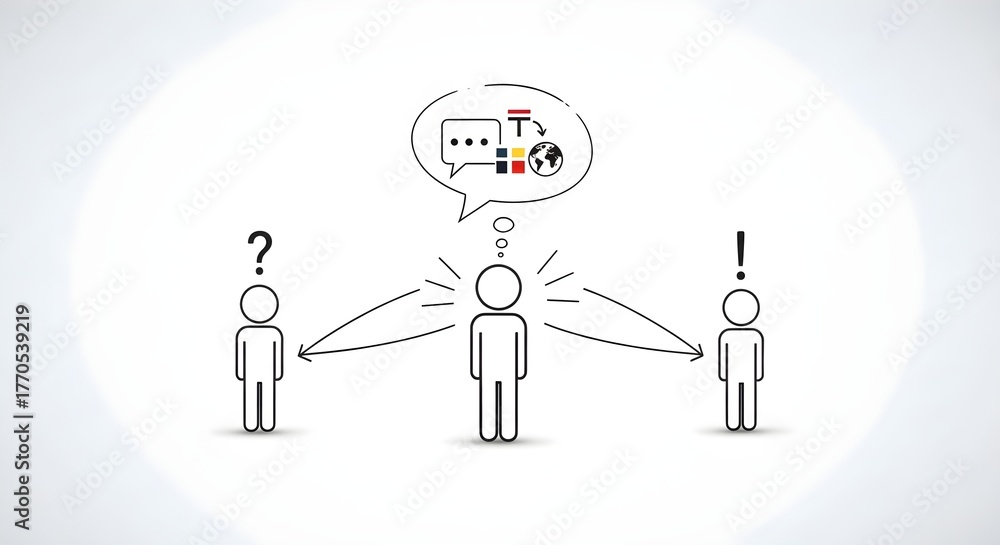 Illustration of mediation with a central figure facilitating communication between two others. #1770539219