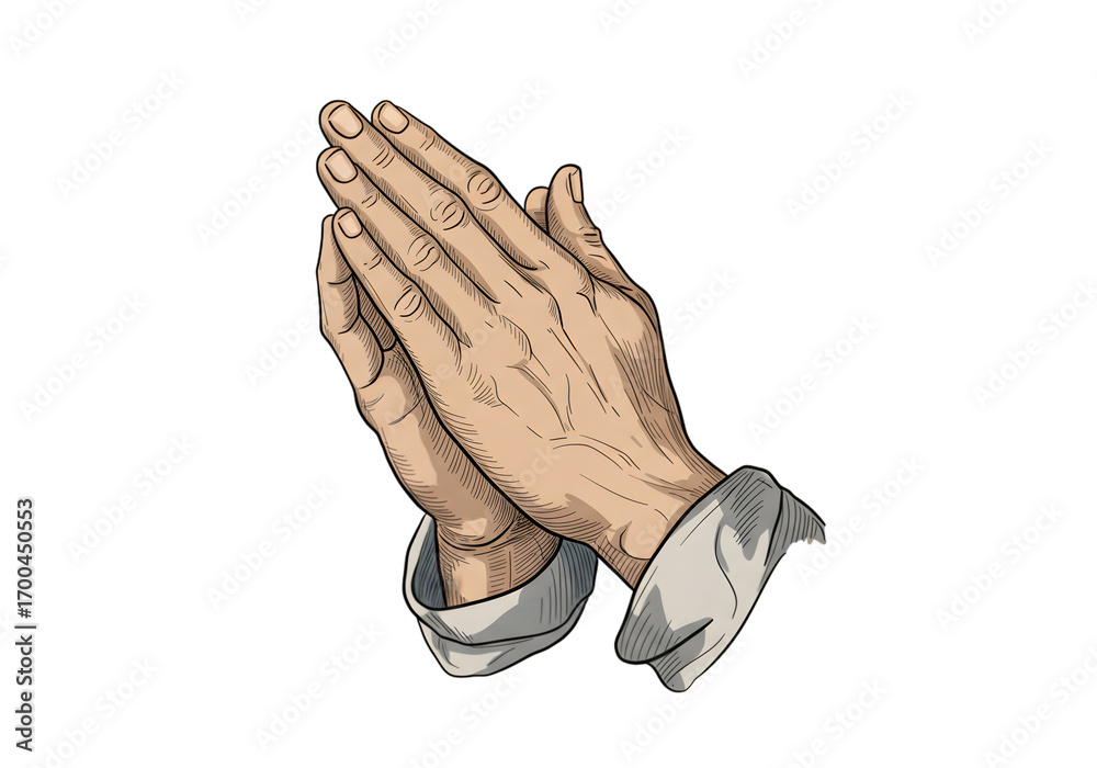 Illustration Of Praying Hands With Transparent Background Black And White Style #1700450553