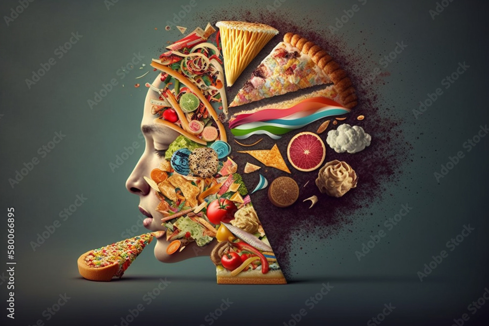 Illustration of the all-consuming nature of food addiction and its hold on individuals. AI generated. #580066895