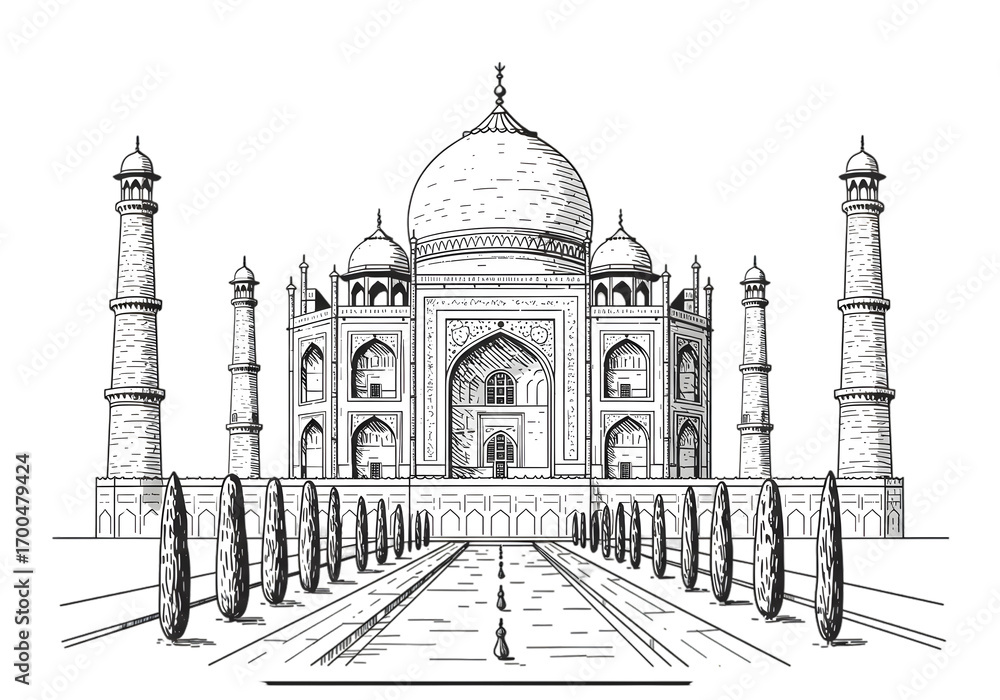 Illustration Of The Taj Mahal A White Monument On A Black Background #1700479424