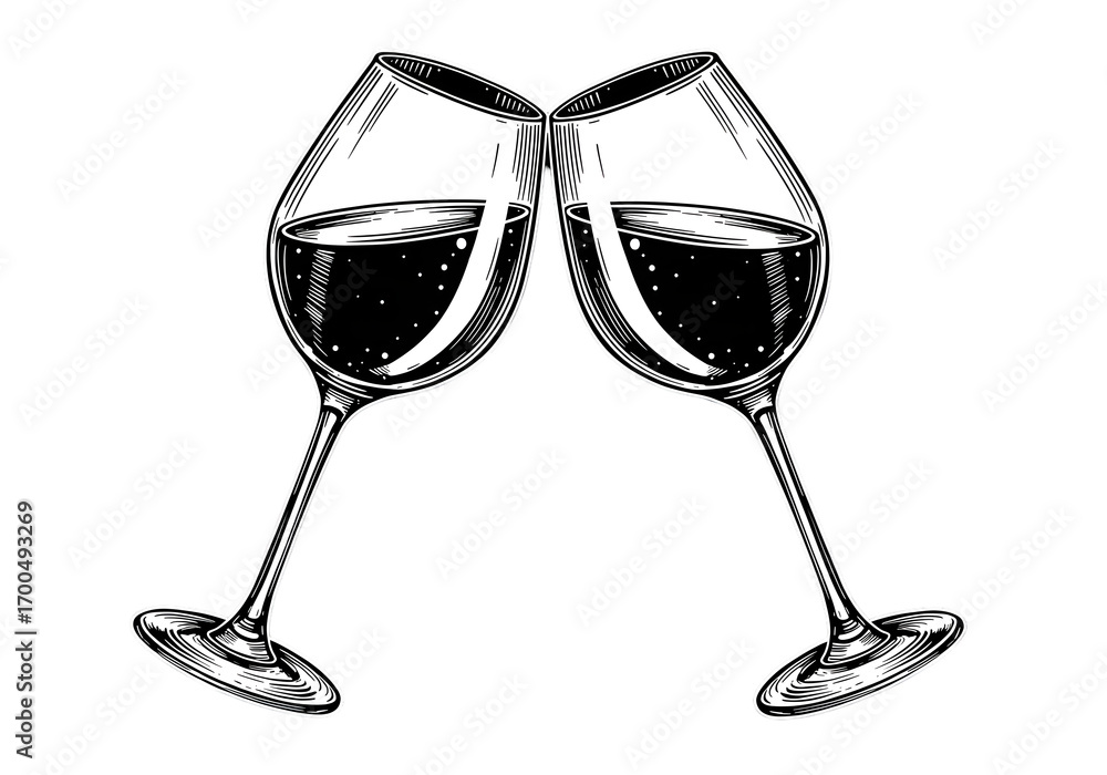 Illustration of Two Wine Glasses Clinking Together in Black and White on a Transparent Background #1700493269