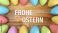 Illustration - 16 Pastellfarbene Ostereier auf rustikalem Holz - Frohe Ostern #1937714513