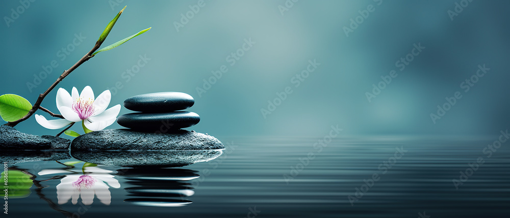 Illustration with a zen scene of deep relaxation and tranquility and with space for text #658618091