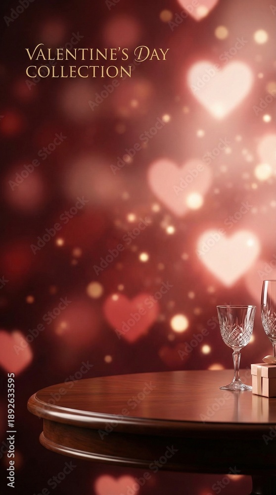 Imagen comercial de San Valentín con fondo romántico y elegante, corazones y luces suaves, diseño moderno con espacio para texto, ideal para campañas publicitarias, promociones y marketing digital. #1892633595