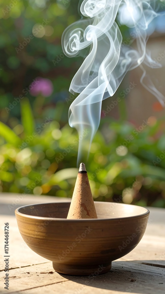 Incense smoke rising from a cone in a bowl #1714468726