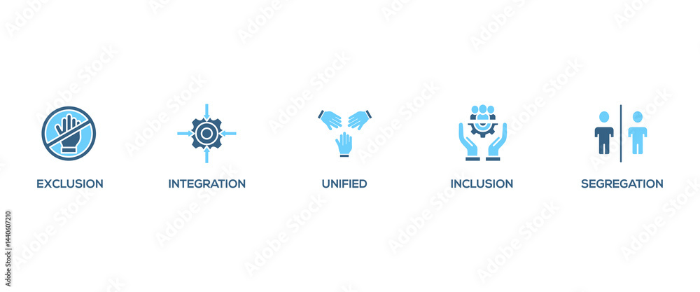 Inclusion revolution banner web icon set vector illustration concept with icon of exclusion, segregation, integration, inclusion and unified #1440607210