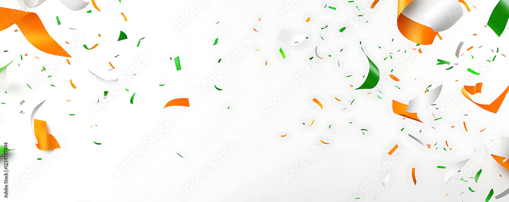 India Independence Day Banner White Background With Orange Green Confetti #1234707444