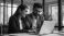 Indian financial advisors, both male and female, discuss a stock market strategy in a modern company using a laptop computer. Managers from South Asia Work Together on a Banking Project #925535621