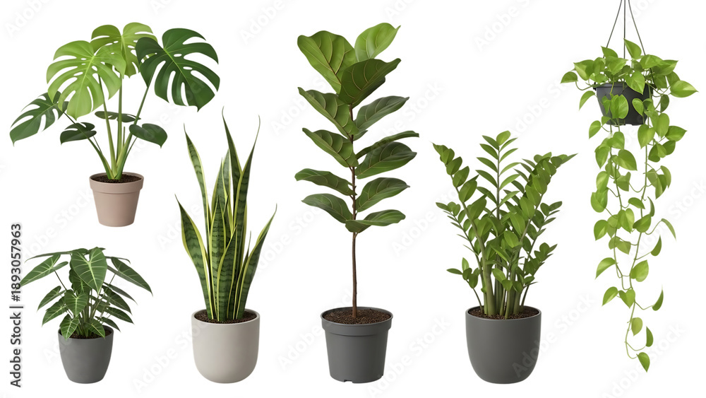 Indoor Houseplants In Modern Pots Set With Plant Stand On Isolated Transparent Background #1893057963