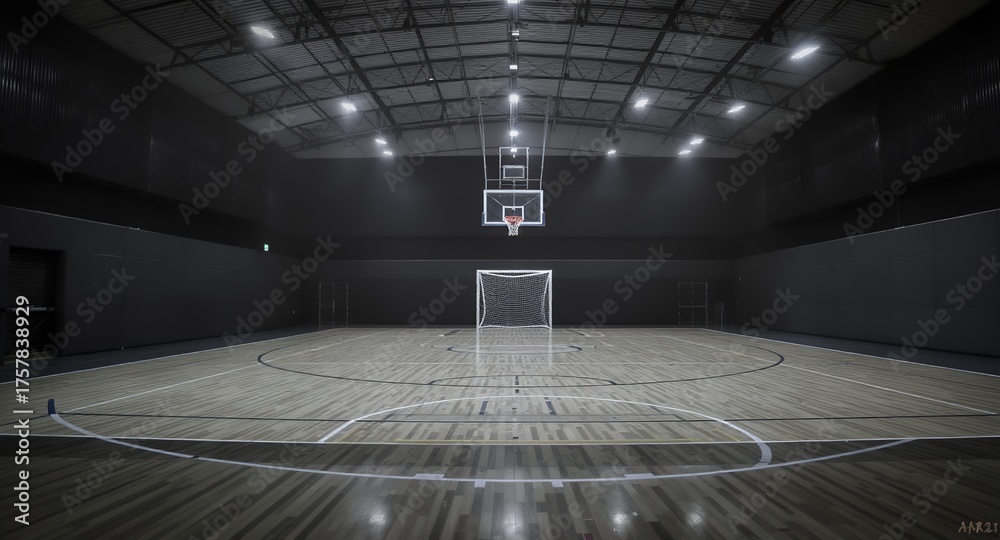 Indoor Multi-Sport Court with Basketball Hoop and Soccer Goal Lighting #1757838929