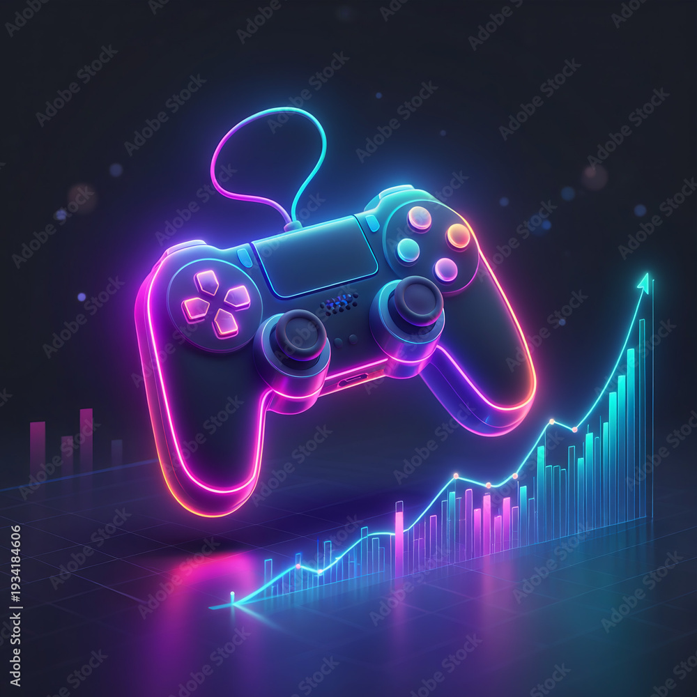 Industry growth in gaming represented by controller and rising graph line for market trends and future potential #1934184606