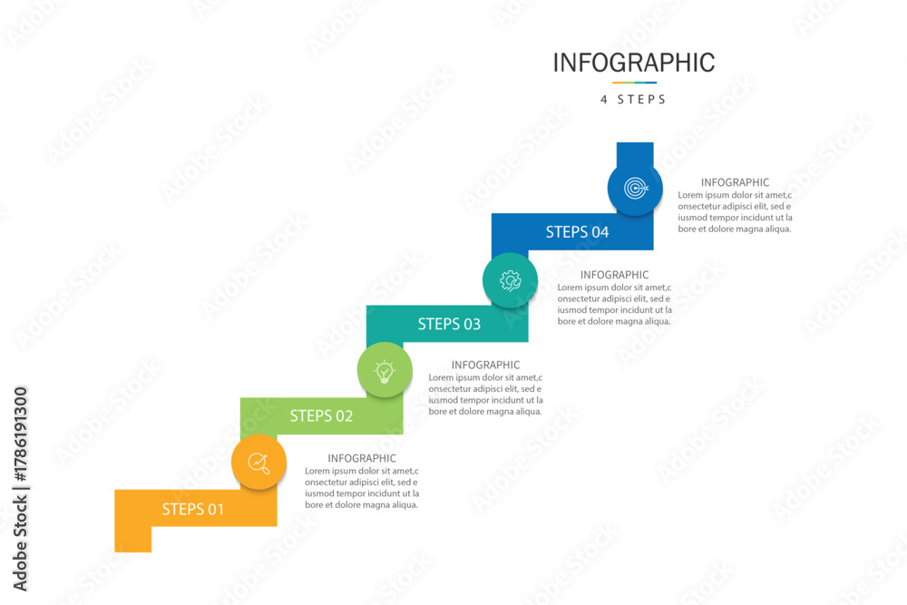 Infographic ladder 4 steps to success growth archetype. Business process. Vector illustration. #1786191300