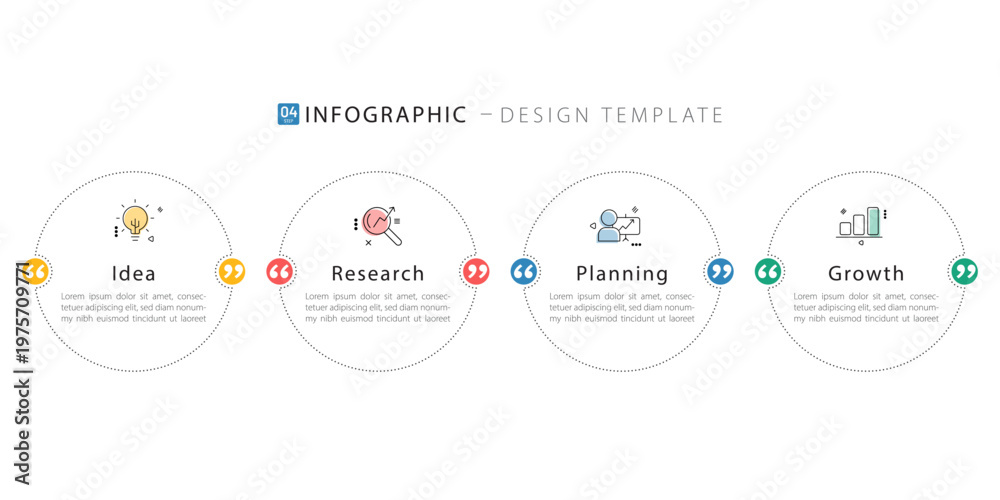 Infographic template. 4 Step timeline journey, Flat simple infographics design template. presentation graph. Business concept with numbers 4 options or steps vector illustration. #1975709771