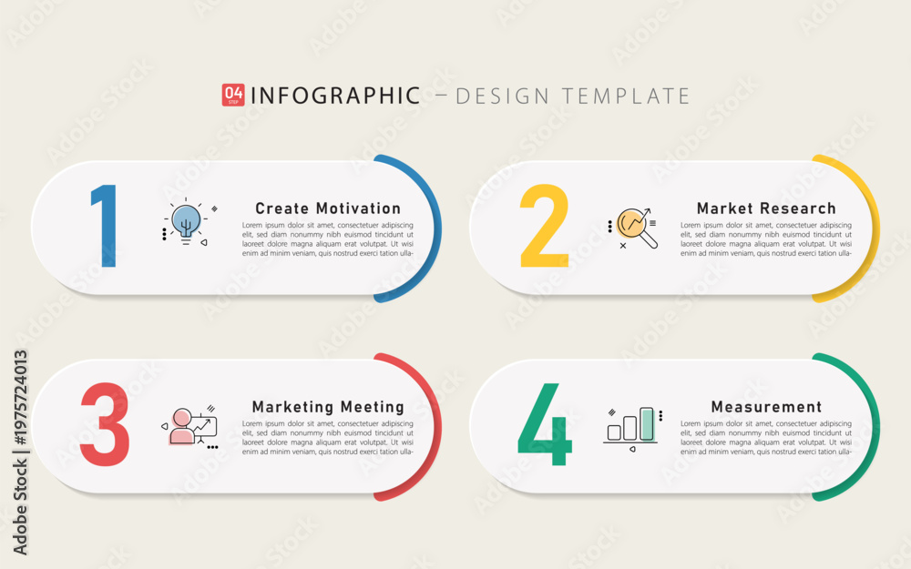Infographic template. 4 Step timeline journey, Flat simple infographics design template. presentation graph. Business concept with numbers 4 options or steps vector illustration. #1975724013