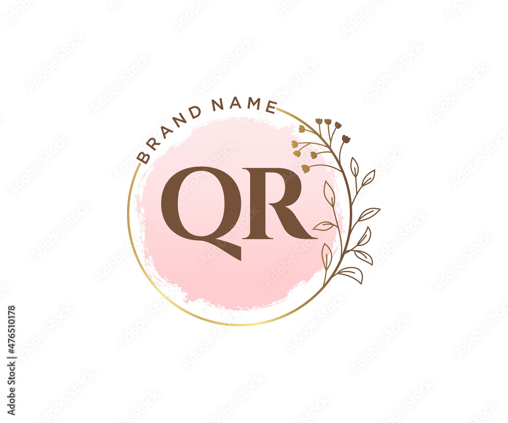 Initial QR feminine logo. Usable for Nature, Salon, Spa, Cosmetic and Beauty Logos. Flat Vector Logo Design Template Element. #476510178