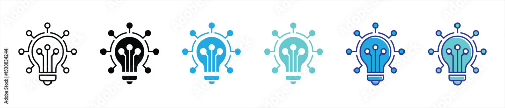 innovative lightbulb circuit icon set. containing bright idea and advanced technology for the future of artificial intelligence, thin line and color style icon symbol sign. vector illustration #1538834244