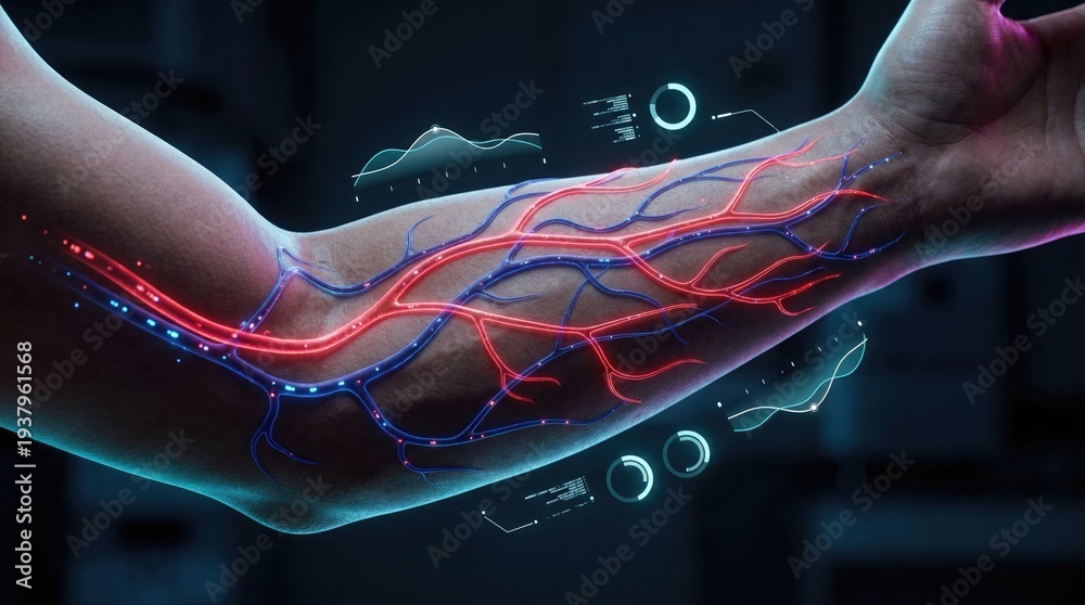 Innovative medical illustration of vascular anatomy clinical setting digital art detailed visualization arm perspective #1937961568