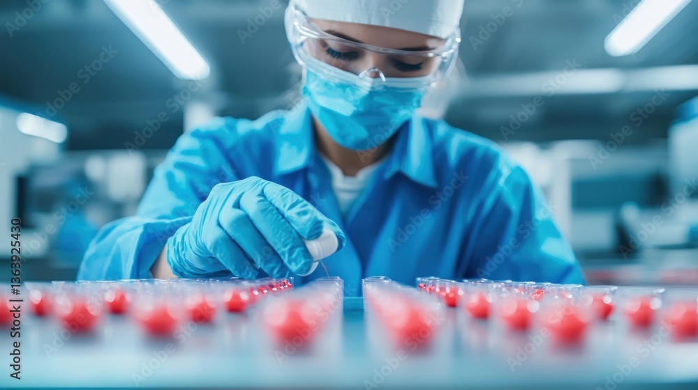 Innovative product packaging solutions in pharmaceutical manufacturing cleanroom environment detailed process view #1363925430