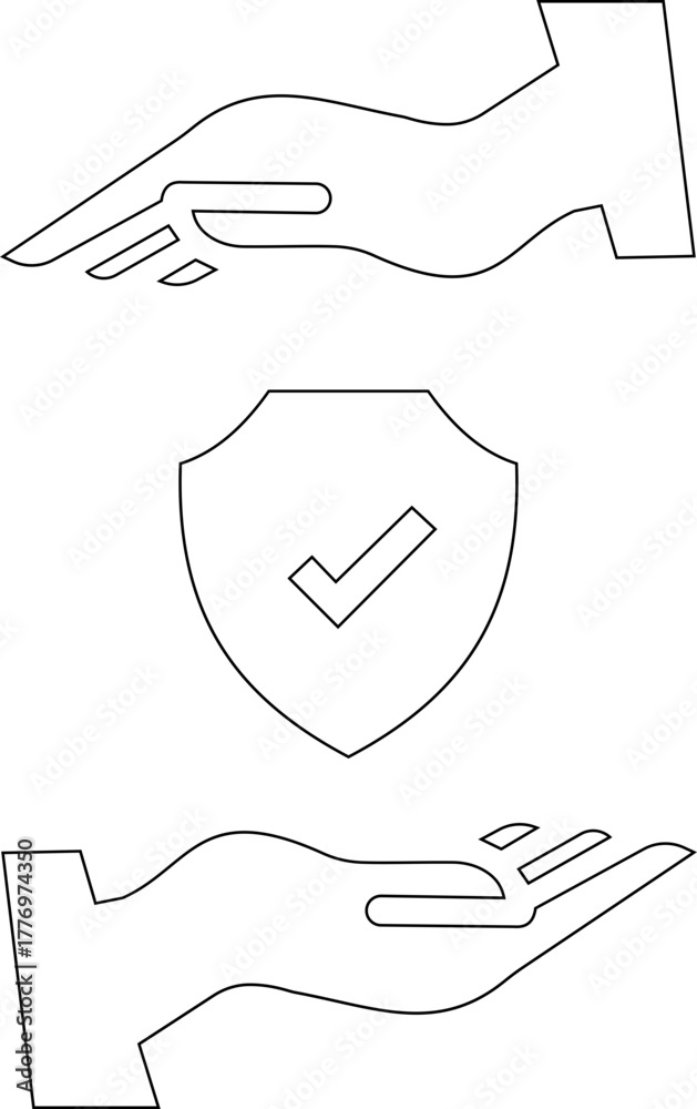 Insurance Hand Protection Concept Icon symbolism of trust, care, and financial safety. This premium black minimal vector shows a stylized human hand gently holding a shield, support, and reliability. #1776974350