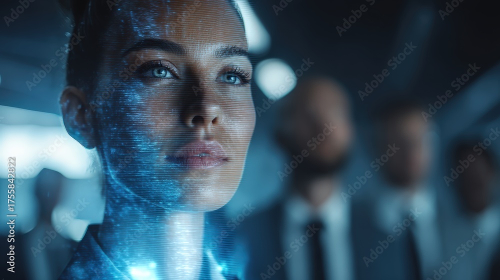 Integrity Culture, diverse professionals gathered around glowing hologram showing corporate integrity values, futuristic ethical business environment. #1755842822