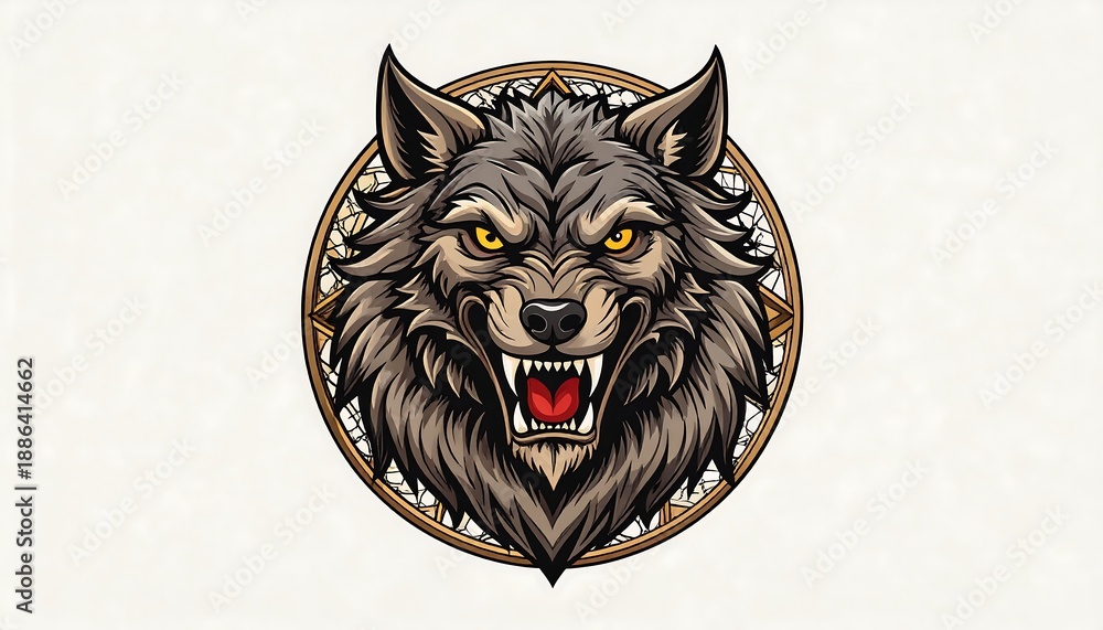 Intense Wolf Gaze - A Fierce and Detailed Illustration. #1886414662