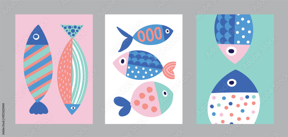 Interior poster with fish. Cute set. #1935620444