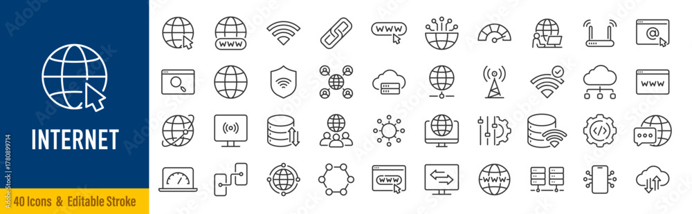 Internet web icons in line style. Web, data, mail, www, hosting, wifi, website. Vector illustration. #1780899714