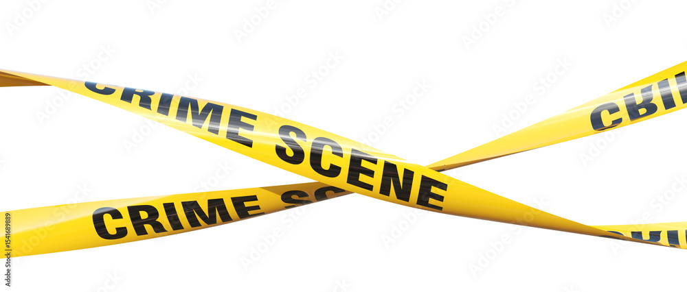 Intertwined yellow crime scene tape isolating 3d #1541689889